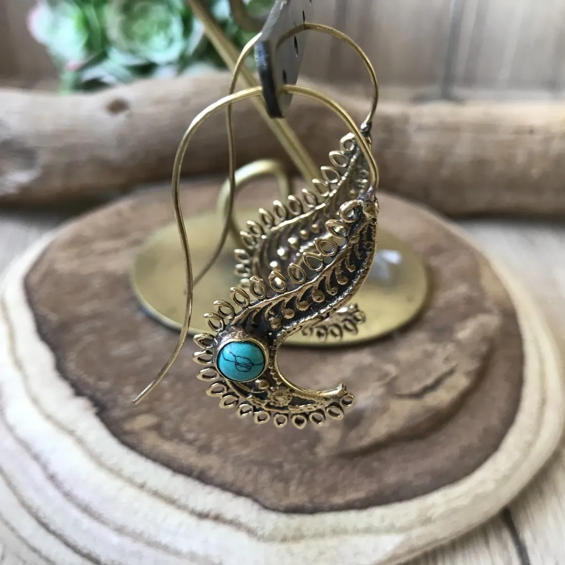PENDIENTE BOHO ETNICO EN LATON DORADO