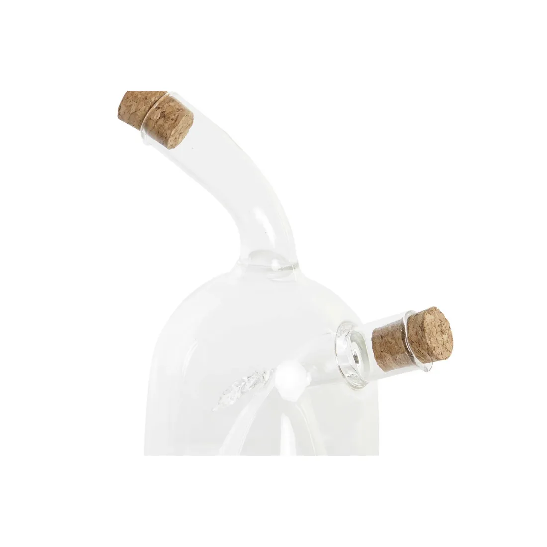 Esta aceitera doble de vidrio de borosilicato. Dispone de dos compartimentos para que puedas poner el aceite y el vinagre en un solo recipiente. Un accesorio de mesa funcional y elegante.