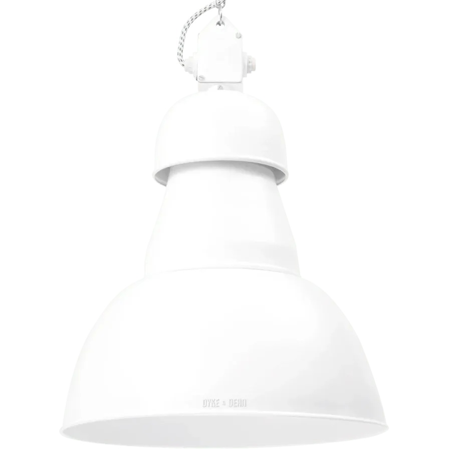 La lámpara tiene un acabado de pintura con recubrimiento en polvo y un reflector interior blanco brillante. Vienen como un kit completo listo para instalar con rosetón, cable de tela y cadena de acero a juego. La lámpara se puede suministrar con un acabado pintado de blanco o acero lacado. Elija el acabado en el menú desplegable y especifique su elección de cable de tela en el cuadro de comentarios al realizar el pedido.