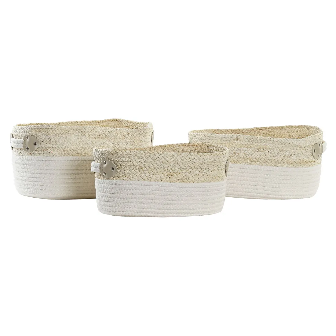 Organizar las cosas a veces no resulta una tarea fácil, o bien por la falta de espacio o por falta de los accesorios. Por eso estas cestas son las aliadas perfectas a la hora de mantener el orden en la rutina del día a día. Son cestas ovaladas que están hechas con fibra y algodón. Dispone de dos asas para poderla desplazar con facilidad. Perfectas para colocar en una estantería, un armario o en la cocina. Además, la fibra vegetal es un material natural que combina con cualquier estilo y aporta un aspecto cálido y acogedor. Hay tres tamaños para adecuarlos a cada hueco.