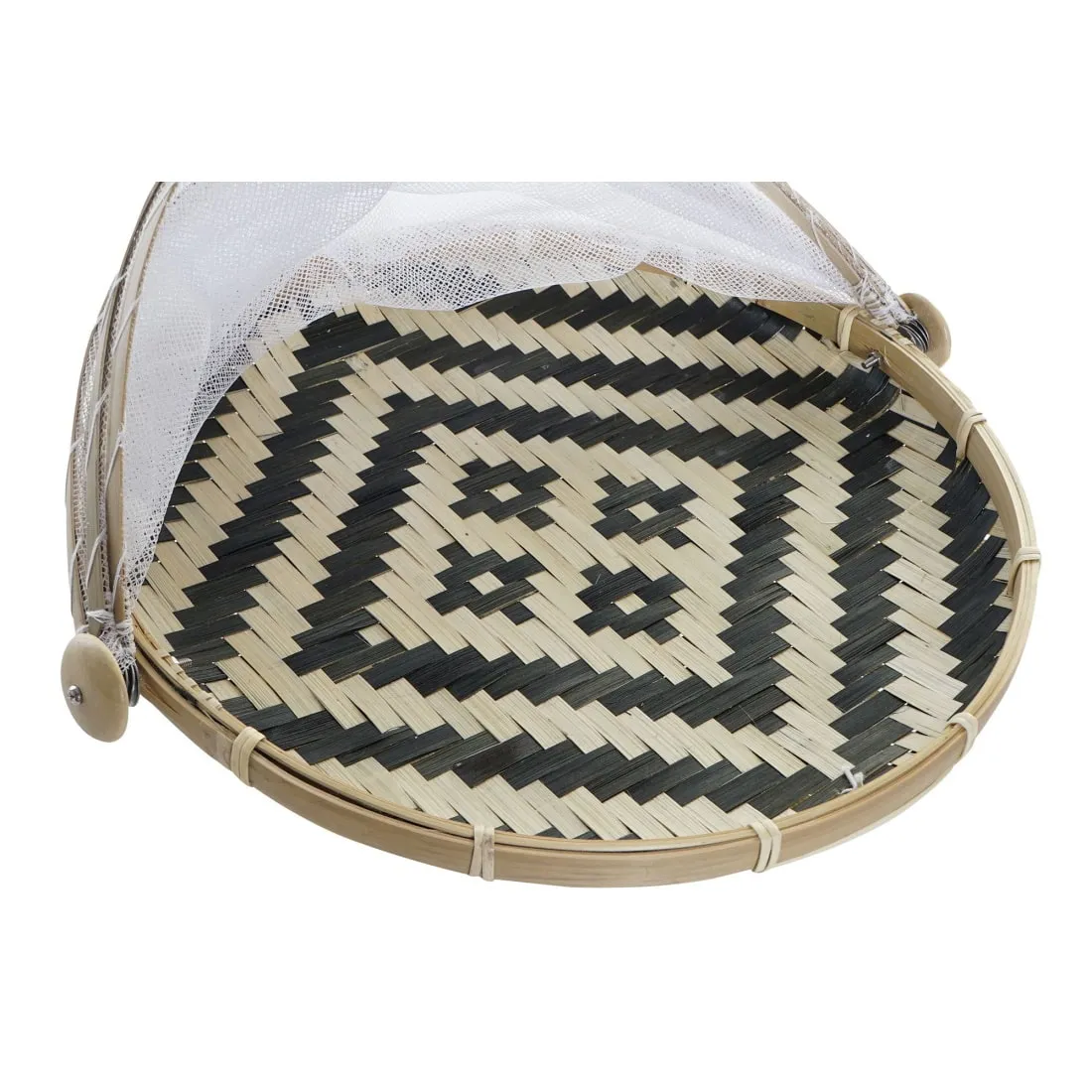 Práctico cubreplatos balinés, hecho de bambú. Ideal para proteger la comida y que no entren bichitos. Tiene un original trenzado bicolor. Se puede utilizar para servir el plato en la mesa, ensaladas, pan, pasteles… Es un artículo sostenible que aportará un toque natural a tu mesa.