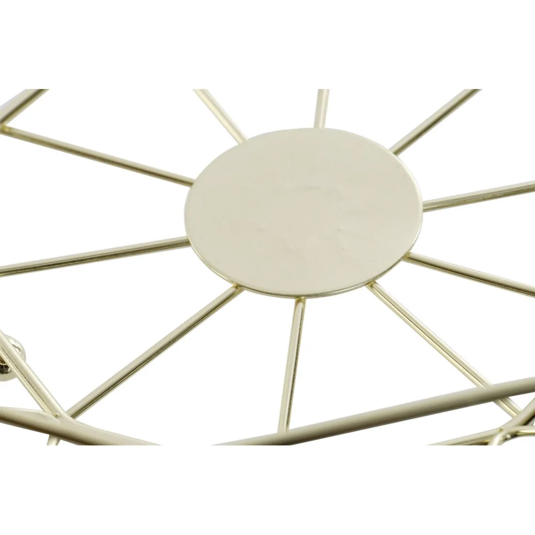 Este original frutero está hecho con varilla dorada. Tiene forma redondeada. Además de cumplir con la función del frutero tradicional, este complemento de mesa es a la vez una pieza de decoración más, que combina tanto con tonos blancos y negros como con cocina más cálidas con madera y materiales naturales.