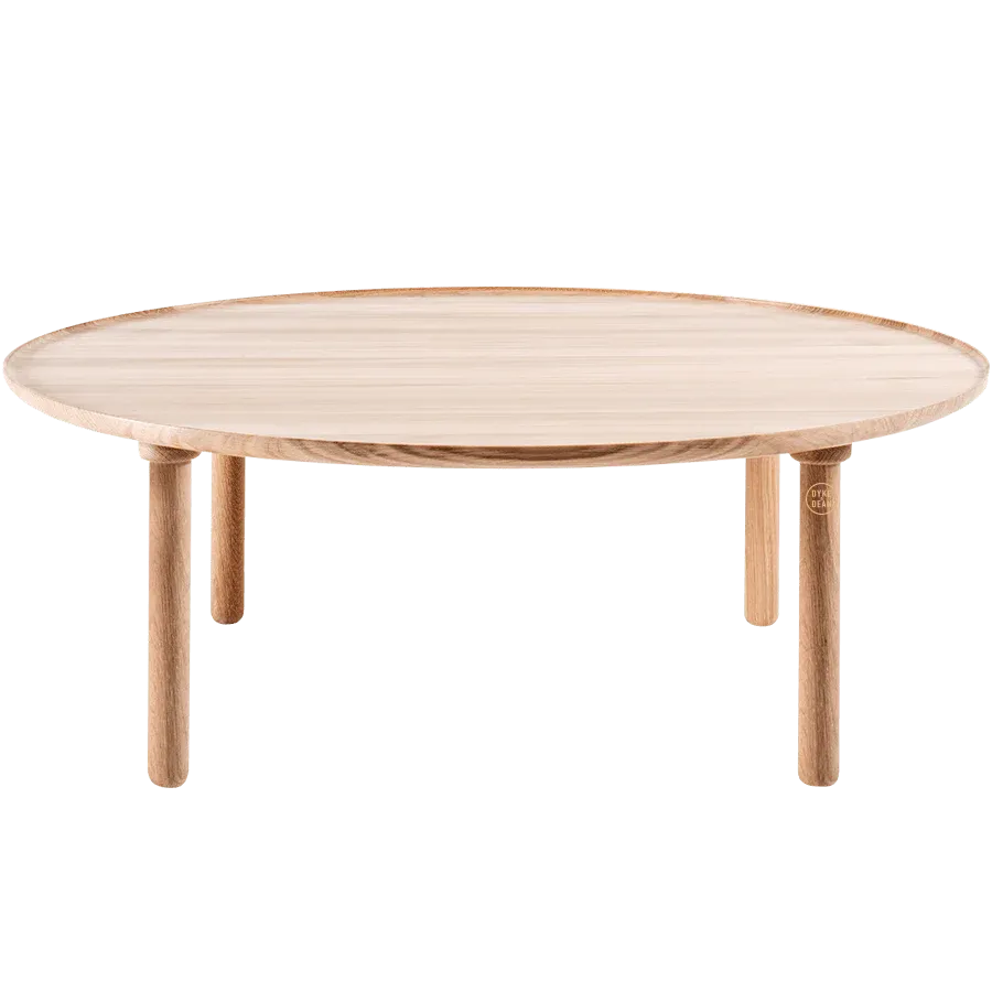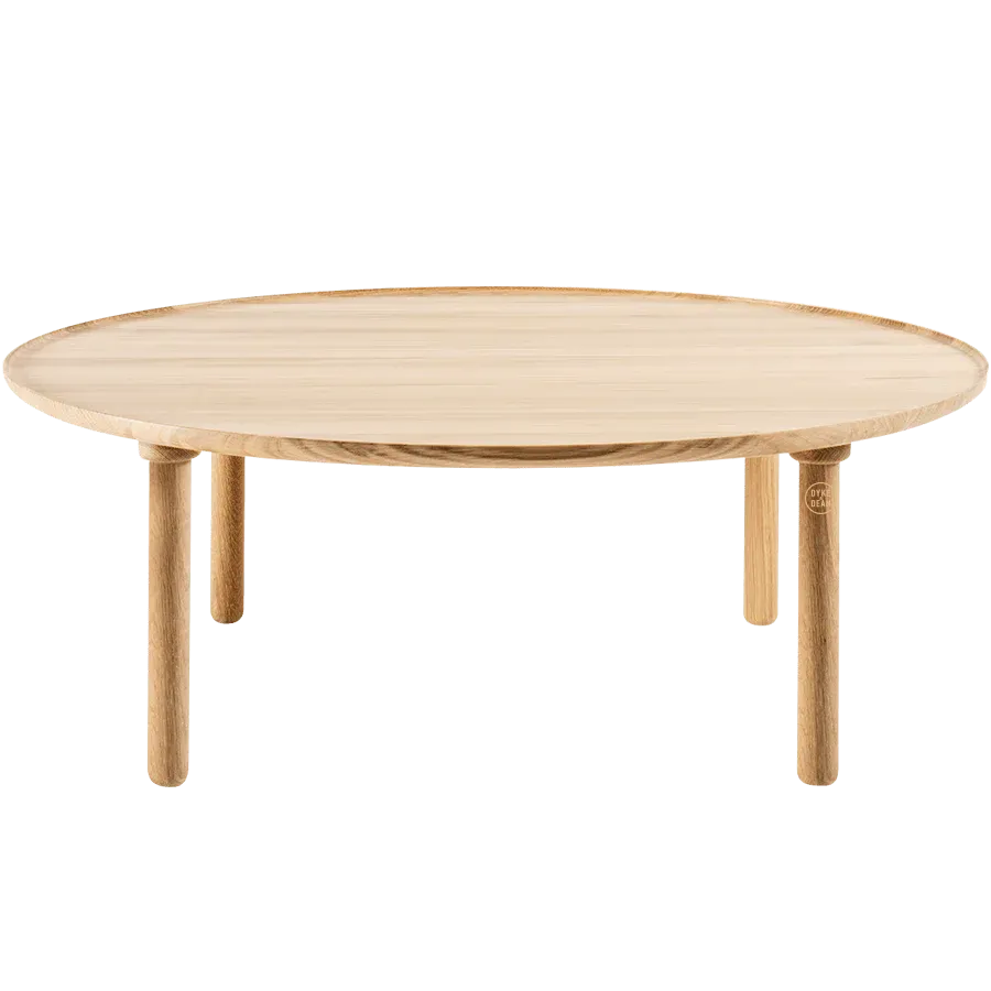 The Mu Coffee Table is crafted entirely from solid oak. The table plate features a subtle raised edge, designed to prevent objects from rolling off. Wooden stiffeners are located at the bottom of the plate to guard against minor dimensional changes in the wood over time due to hygroscopy.