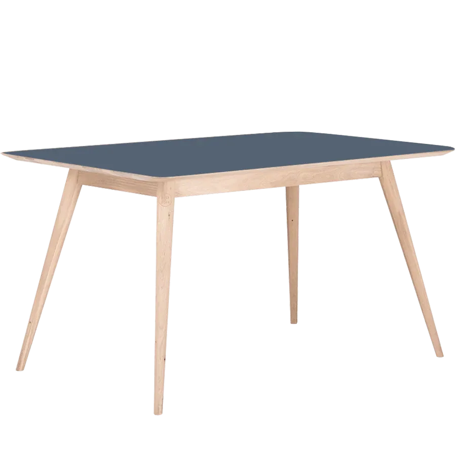 The table plate is constructed either from solid oak or from desktop linoleum—a natural, warm, smooth, and antibacterial material—affixed to a beech plywood base. For the solid oak variation, steel stiffeners are incorporated at the plate’s bottom side, mitigating minor dimensional changes in the wood due to hygroscopy.
