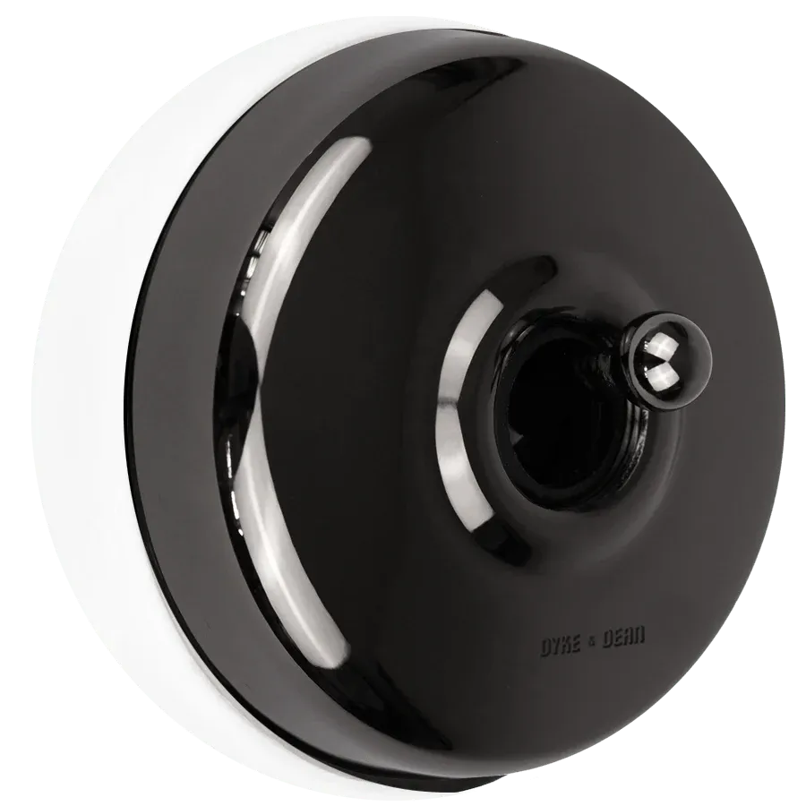 Botón estilo Memphis para ese satisfactorio «clic» de encendido o apagado. Baquelita de muy alta calidad fabricada hoy en Alemania según el diseño original. Esta versión presenta un botón rojo en contraste. Los terminales incluyen un punto de puesta a tierra.