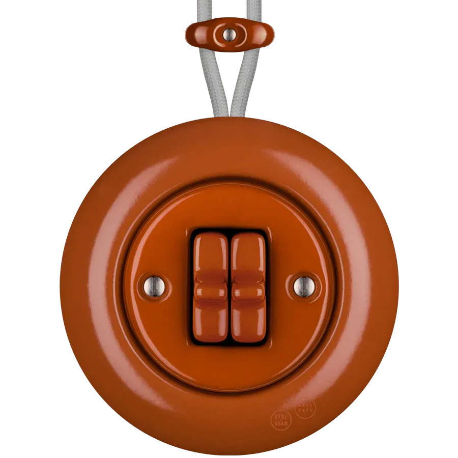 PORCELAIN ROUND SURFACE MOUNTED DOUBLE TOGGLE BUTTON SWITCH BRICK RED