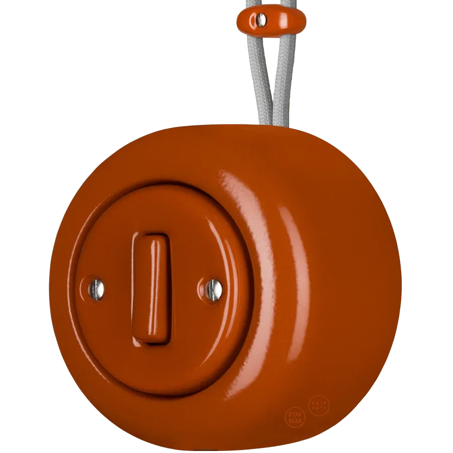 This one comes with the slim button switch. Made of traditional porcelain which is engrained and abrasion resistant. The colours are constant and, unlike colours of plastics they are UV and Dust resistant. Constant colour and highly abrasion-resistant surface. Enamelled and handmade in a top glossy quality. CE conformity certificate available on request. Decorative cover. Guarantee 50 years.
