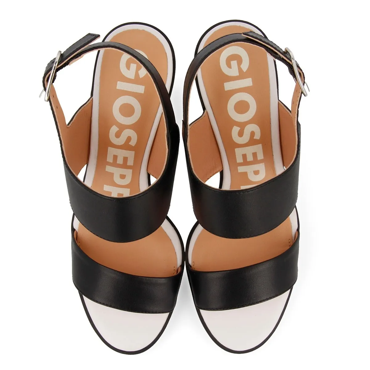 Esta sandalia está confeccionada en piel negra. Su tacón es de 5 cm en color naranja. La plantilla es de piel y está acolchada. Las sandalias en color negro son imprescindibles esta temporada, lúcelas en tus looks más estivales, le darán el toque perfecto a cualquier outfit.
