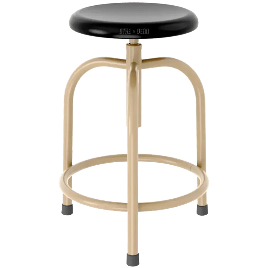 Los marcos de acero con recubrimiento en polvo se complementan con un asiento de caoba lacado. Es totalmente ajustable simplemente girando el asiento, lo que lo convierte también en un taburete giratorio.