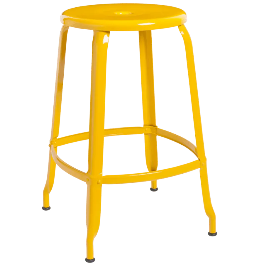 Todavía se fabrica en Francia hasta el día de hoy. Fáciles de utilizar como taburetes cotidianos para mesas, barras y escritorios, se han convertido en un clásico del diseño y, de hecho, son muy cómodos. Disponible en varios acabados y muchos colores seleccionables entre los códigos de colores RAL.