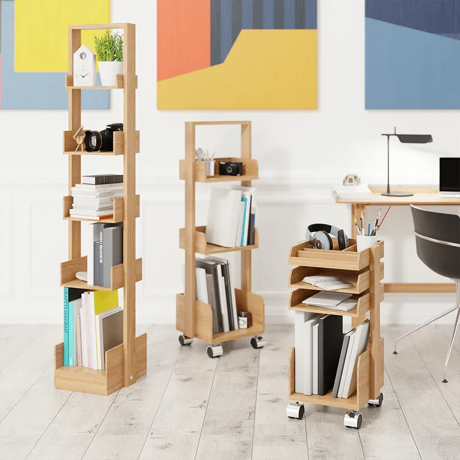 Bookie’s five-shelf book storage and object display unit is a freestanding design. It doesn’t need to be against a wall. There’s no front or back and works equally well in an open plan space, an alcove or against a wall. Use as a single piece or in multiples.
