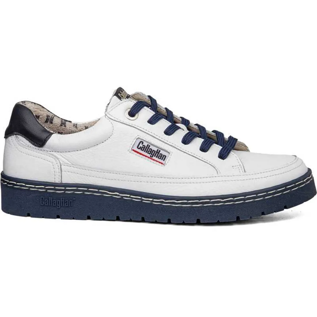 Estos deportivos están confeccionados en piel de máxima calidad y resistencia en color blanco. Las pieles han sido curtidas con aceites y ceras naturales que confieren un brillo especial. Lleva cordones y suela a contraste marino. Su forro es textil transpirable y las plantilla extraibles. Su suela de goma es de unos 3,5 centimetros. tipo de pie y a su aumento de anchura. Callaghan Adaptaction se adapta a tus pies, se adapta a ti. Disponible también en color blanco con suela y cordones amarillos..